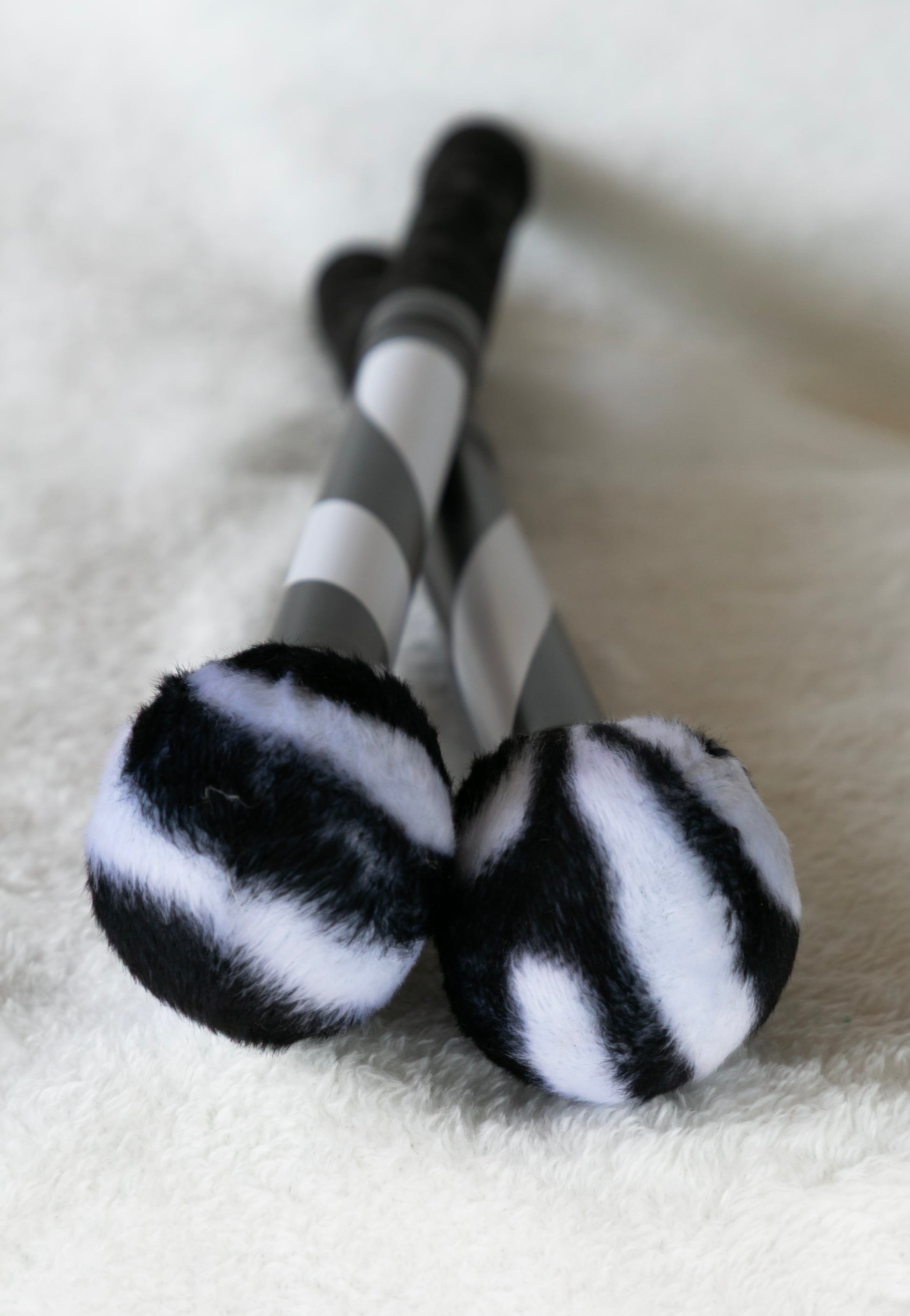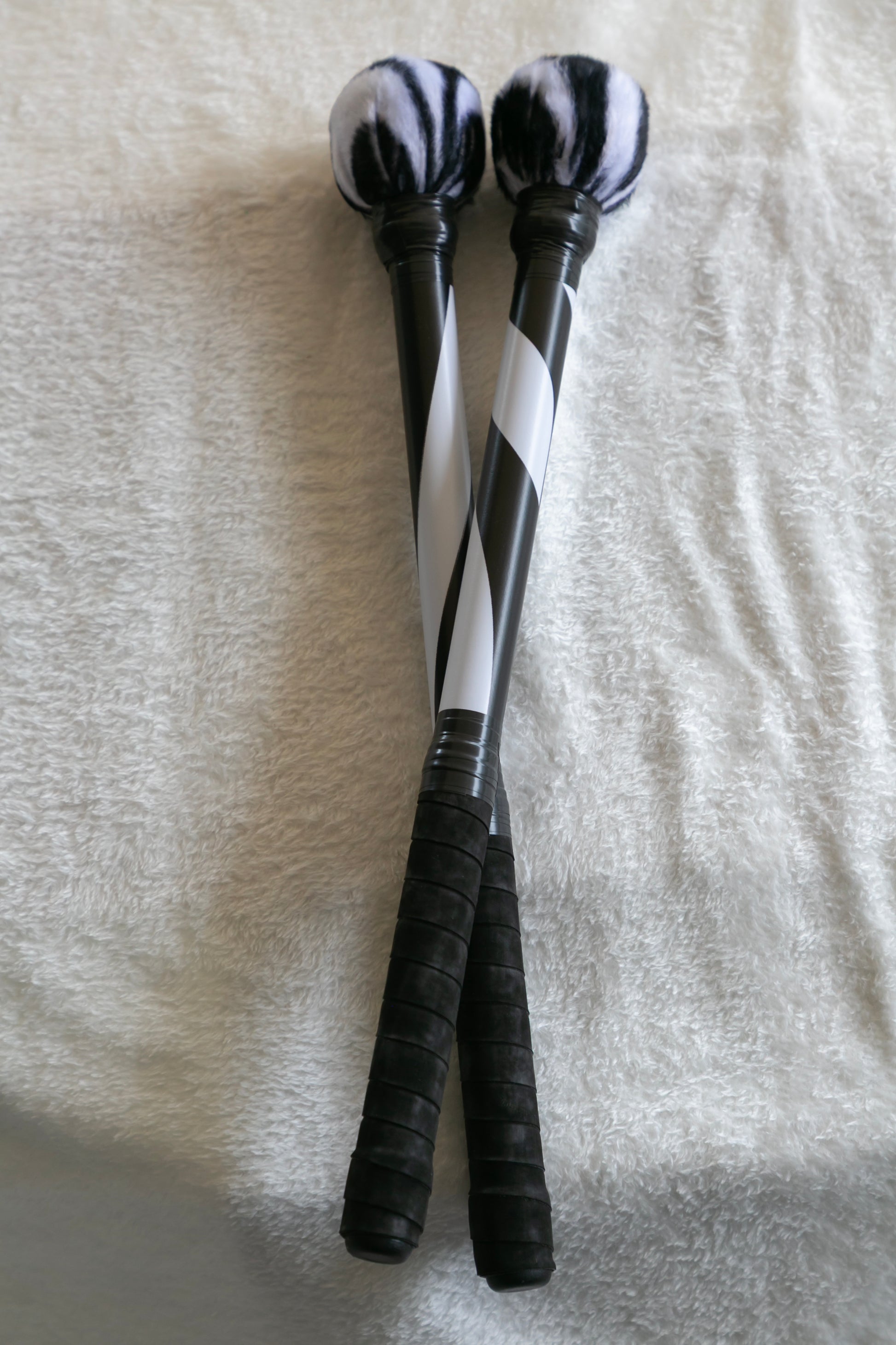 Mazas de aluminio con vinilo de cebra. Tela de cebra muy resistente y grip para un excelente agarre.