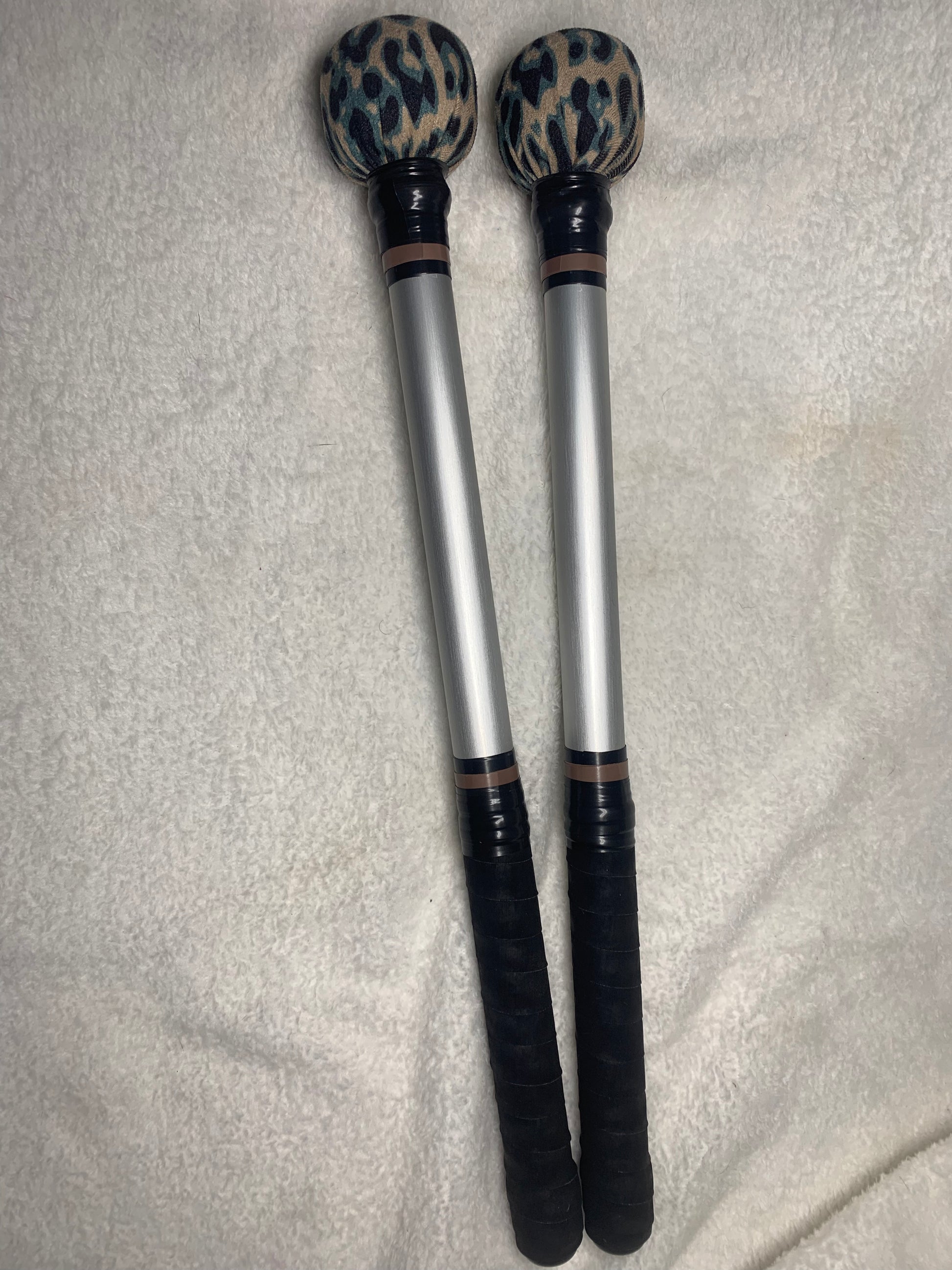 Mazas de aluminio anodizado en plata. Tela de animal print muy resistente y grip para un excelente agarre.