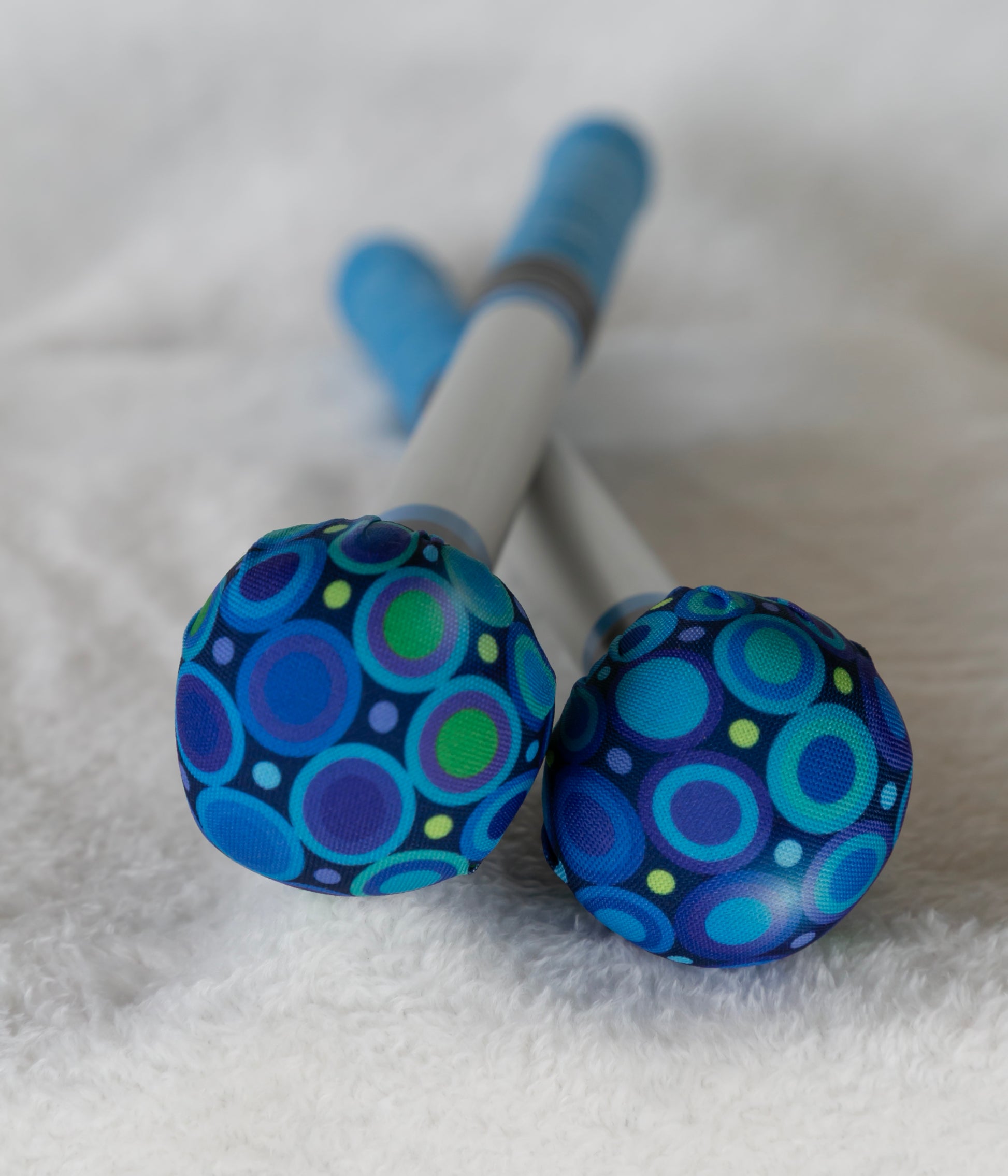 Mazas de aluminio anodizado en plata. Tela de poliester muy resistente y grip para un excelente agarre.