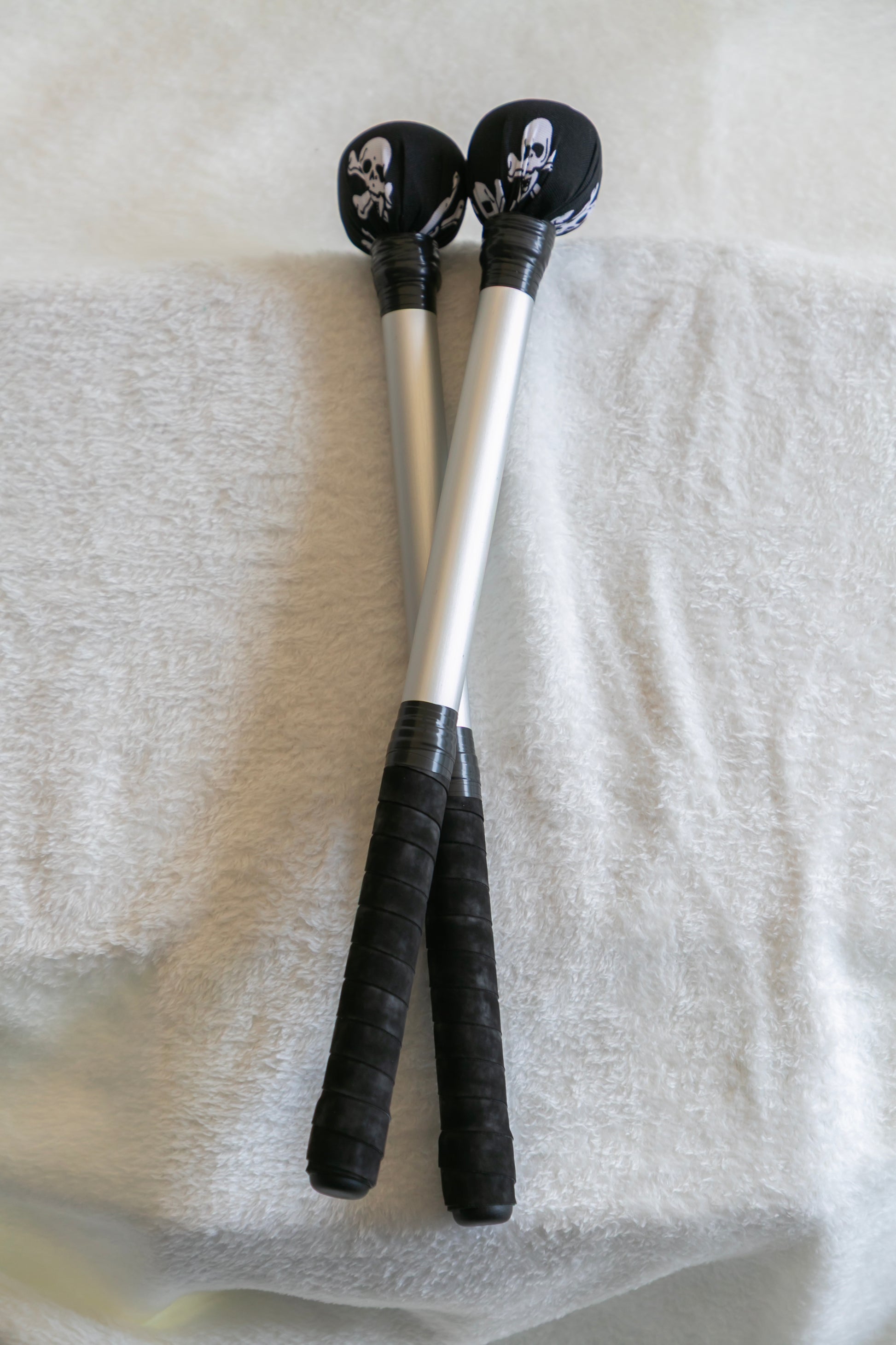 Medidas de las mazas: 40cm de largo, 20mm de diámetro del tubo. Peso 110gr aproximadamente por maza.